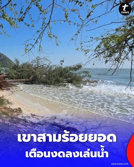 เตือนนักท่องเที่ยว เขาสามร้อยยอด ปักธงแดง คลื่นหนุนซัดหาดพังยับ